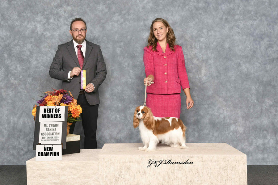 Keira (CH Mingchen Just By Chance) came to us as a young adult from Louise Pearce of Mingchen Cavaliers. We feel very lucky to have been given the opportunity and are just thrilled to have her here with us. She radiates happiness and love everywhere she goes and is always a crowd favorite. She recently took the conformation ring by storm, and earned her Canadian Championship in just a few weekends. Pending her passing health clearances, we have some exciting breeding plans for her in 2026.